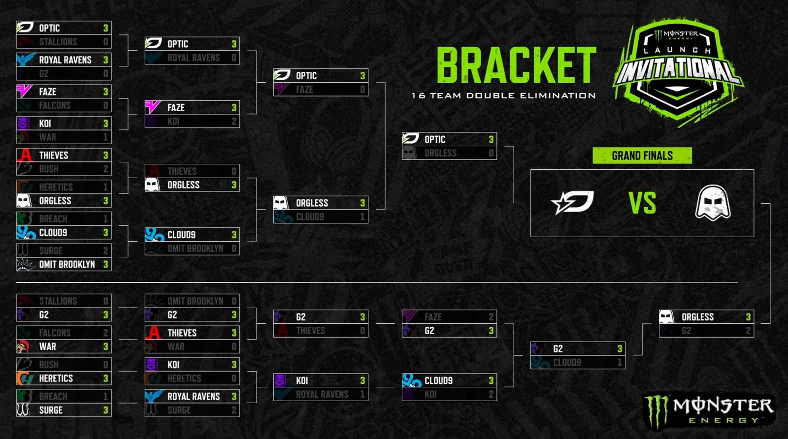 Tras enfrentarse a Optic Texas en la final del “Winners Bracket” y caer derrotados, el equipo conformado por Neptune, Ghosty, Sib y Envoy se enfrentó a un sorprendente G2 Minnesota en la final del “Losers Bracket”. El duelo terminó a favor de Orgless por 3-1.